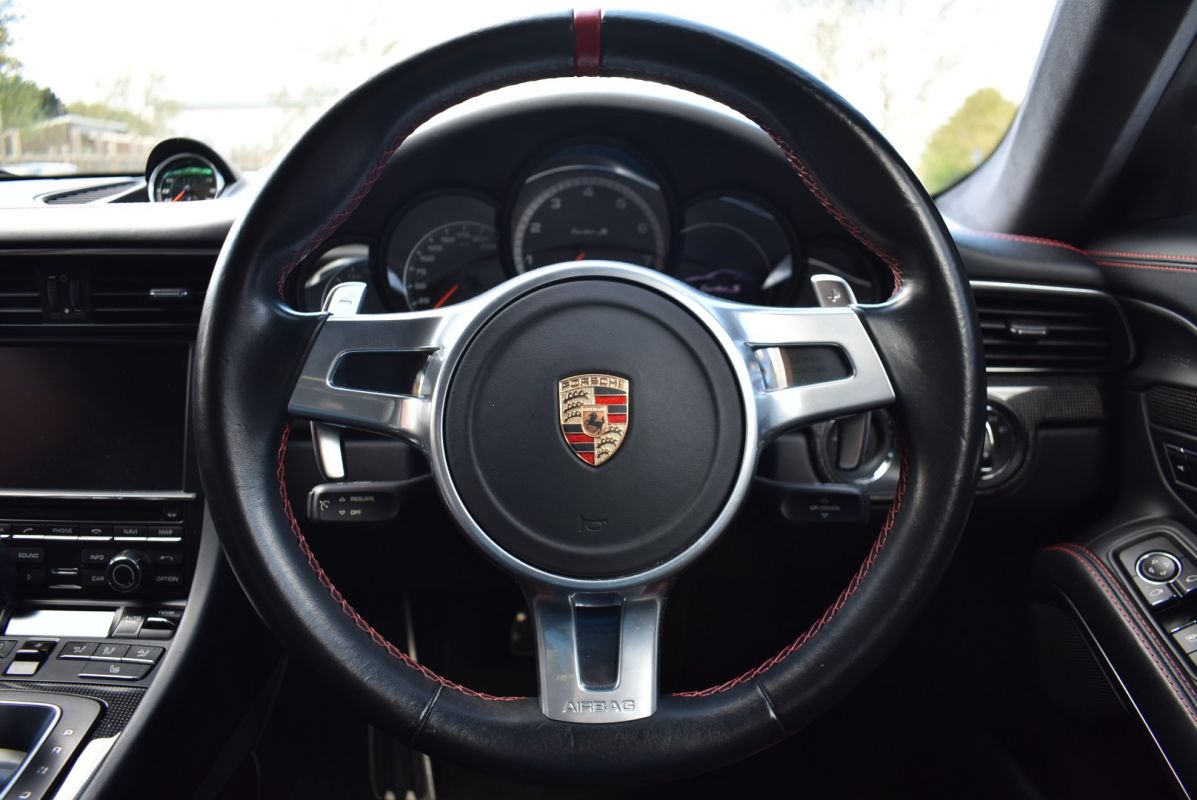 This is a rare opportunity to buy an exclusive collectors edition of the 911 Turbo that was limited to only 40 examples. The 991 Turbo S GB Edition was produced to commemorate 40 years of the 911 Turbo and is unique to the UK market. They were only available in the 3 classic Porsche colours of Silver, Red and White, with styling references to the 70's 930 Turbo, featuring Porsche script along the sills and Sport Classic alloys. Powered by a 3.8 litre twin-turbo flat-six engine producing 552bhp. It has been fully prepared for sale by our award winning Porsche factory trained technicians to a very high level.
