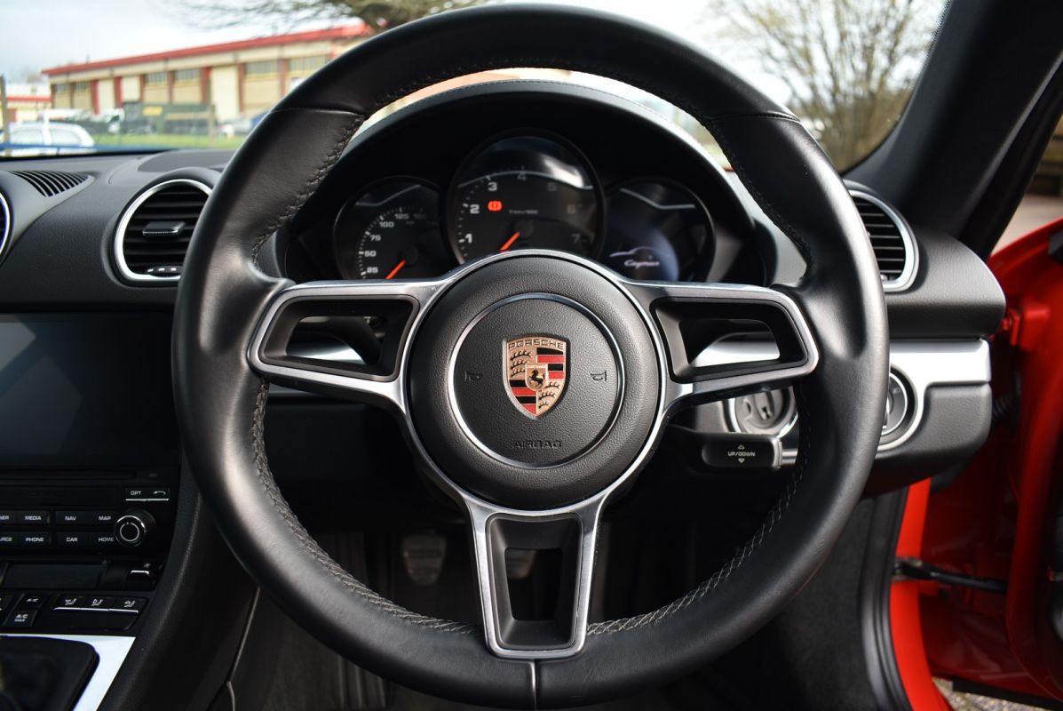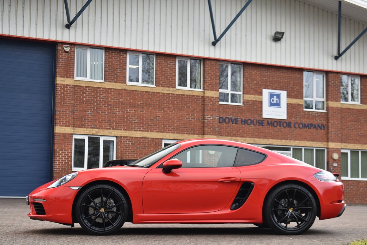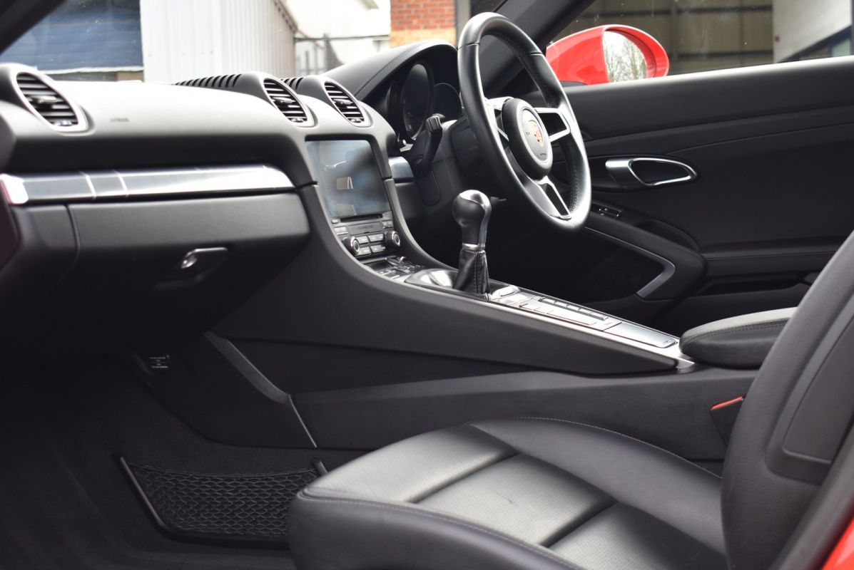 Launched in late 2016 the 718 Cayman is the latest derivative of the class leading mid-engine sports car, featuring the new eco friendly 2.0 turbocharged engine producing 300 bhp and an even sportier chassis setup. This particular car is equipped with a fantastic specification over and above the standard to include desirable options such as PSE, 20" Alloys, Camera etc... Fully prepared for sale by our award winning Porsche factory trained technicians to a very high level.