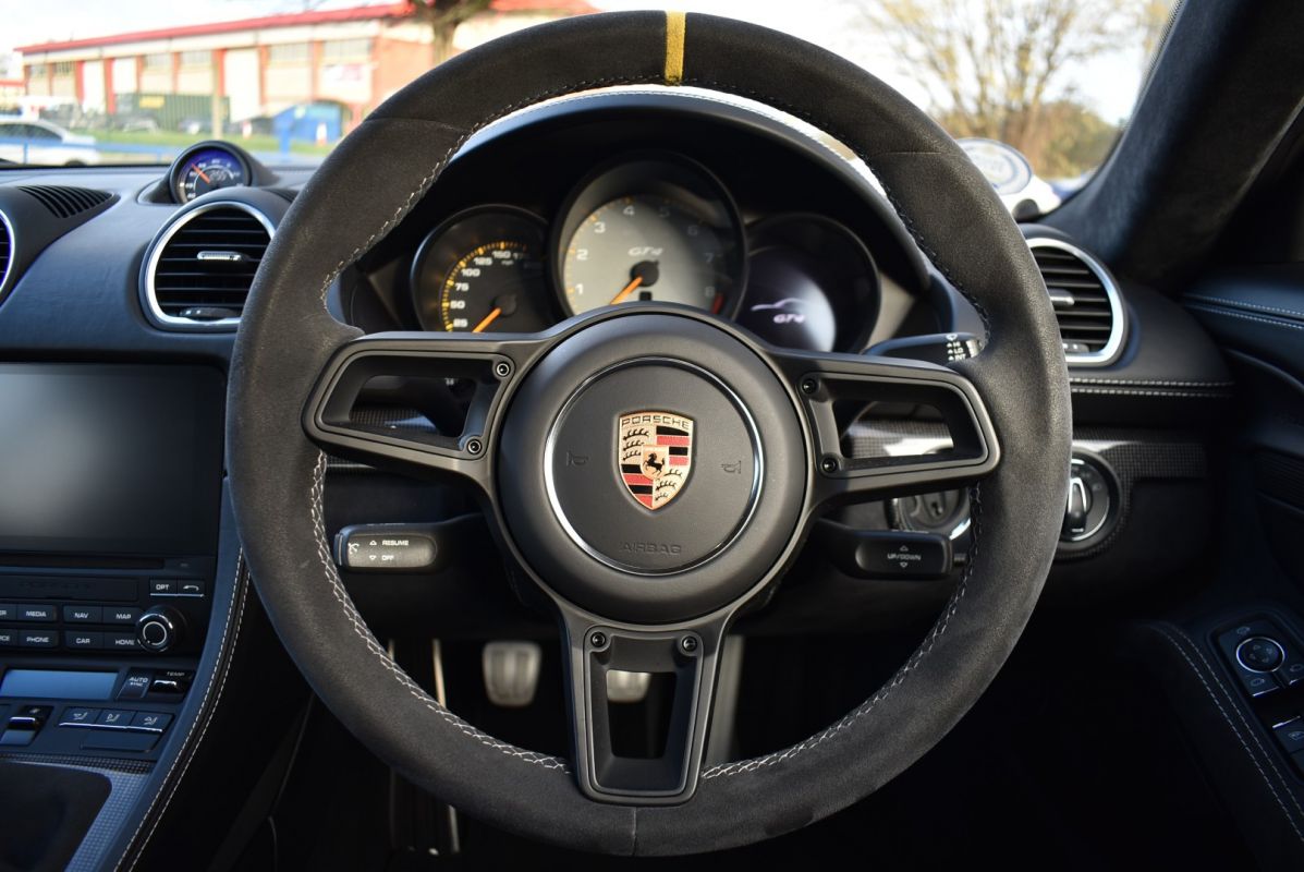 In 2016 the 718 was launched as the latest version of Porsches 2 seater mid-engine sports car and in late 2019 the GT4 was added to the stable, as the latest flag ship track focussed version of the Cayman. Porsche also took this opportunity to reintroduce the flat-6 engine to the model with a 4.0 engine producing 400PS. This particular car is equipped with the highly desirable purist focussed manual gearbox and comes with a huge list of optional extras totalling almost £24k to include PCCB, Bucket Seats, Clubsport Pack etc... It has been fully prepared for sale by our award winning Porsche factory trained technicians to a very high level.